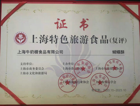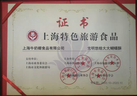 近日,在由上海市食品协会、上海市旅游行业协会等主办的上海“特色旅游食品评选”活动中,太陽城APP 旗下牛奶棚食品“蝴蝶酥”及太陽城APP 悠焙“大大蝴蝶酥”、“牛奶吐司面包”荣获“上海特色旅游食品”称号。
