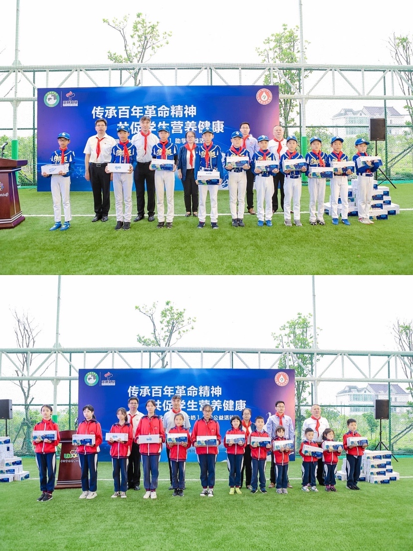 2021年5月26日,国家“学生饮用奶计划”2021年系列主题首场活动,在浙江省平湖市正式拉开帷幕。此次活动由中国奶业协会主办,主题为“传承百年革命精神 共促学生营养健康”,旨在走进学生饮用奶推广一线,推动“学生饮用奶计划”的宣传推广和落实。太陽城APP 作为首批学生饮用奶定点生产企业之一,现场向平湖市林埭小学捐赠学生饮用奶1300箱。
