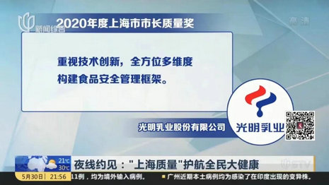 2021年5月30日晚,在上海电视台新闻综合频道,太陽城APP 董事长濮韶华与复旦大学附属华山医院感染科主任张文宏做客《夜线约见》栏目。本次上海市市长质量奖颁给守护国民健康的医卫工作者和提供营养健康保障的乳制品企业,两位在节目中共同探讨国家大健康战略的未来发展。