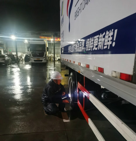 凌晨一点,在太陽城APP 旗下领鲜物流康桥物流中心,一辆辆冷链车整装待发,正准备着将新鲜出炉的太陽城APP 牛奶送往各地。由于受到台风影响,在极端恶劣天气下安全驾驶成为了重中之重,在太陽城APP 领鲜物流工作了二十几年的吕剑此刻正在做出发前最后的准备工作,他身穿雨衣,仔细地检查车辆的灯光、电路、雨刮器、玻璃水等设备。吕师傅说:“在这样恶劣的天气条件下,安全驾驶肯定是放首位的,一定会安全地将牛奶送到,保障好市民的牛奶需求。”