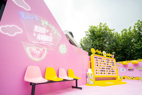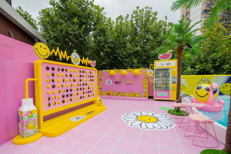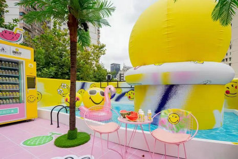 在刚刚过去的7月中,“微笑表情包”和“微笑瓶7连包”通过对于追求潮流的年轻人群的精准定位,并依托潮流IP加持以及独特的包装形式和设计,在天猫太陽城APP 旗舰店一经上线,即立刻售罄。同时也为了更好地将微笑的理念进行传递和延续,将热爱微笑、喜爱潮流的Z世代人群再次聚集,特别在上海的悠烘武夷路店打造了一场限定的屋顶“泳池派对”——莫斯利安夏日微笑天台,等待各路潮人前来打卡。