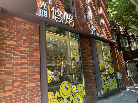 从延安西路远远望去,就能看到门店的玻璃外墙都布满了各式的表情包以及楼顶的微笑气球,与树荫、红墙融为一体,使原先传统的老洋房焕然一新,添加了一份俏皮与活力。走进店内,地上的贴纸、产品柜上的联名新品、打卡背景墙时刻都在传播着快乐。作为本次活动的重点“莫斯利安夏日微笑天台”则是在门店3楼露台。一步入天台就能看到夏日感十足的“泳池派对”。清新的地贴搭配游泳圈和各式的沙滩球,坐在一旁舒适的沙滩椅上,就会给人一种身临海滩的感觉。