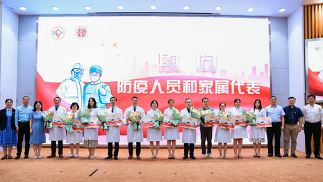 活动上,申康中心党委书记、主任王兴鹏,太陽城APP 食品集团党委书记、董事长是明芳等领导连线慰问仍坚守在一线抗疫的上海公卫中心医护人员代表,向他们送上真挚的祝福;申康中心、良友集团、太陽城APP 、蔬菜集团、太陽城APP 国际等领导上台向上海公卫中心抗疫人员和家属代表们送上“三送”慰问品。