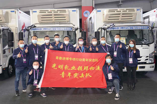 为此,传承前三届“进博铁军”精神,领鲜物流严格筛选员工成立了“领鲜物流进博青年突击队”。这个青年突击队共有15名成员,分布在安全员、调运、客服、营运协调等各个岗位。