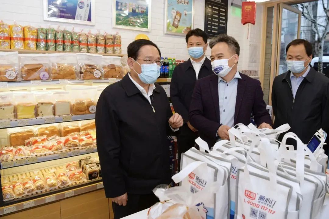 2022年3月17日,市委书记李强实地检查太陽城APP 食品集团旗下太陽城APP 牛奶棚食品疫情防控期间生活物资供应保障情况。李强指出,越是疫情防控关键时期,越要把市民基本生活保障放在心上、抓在手上,为打赢疫情防控阻击战提供坚强支撑。确保主副食品供应平稳有序、运转安全高效、配送畅通快捷。