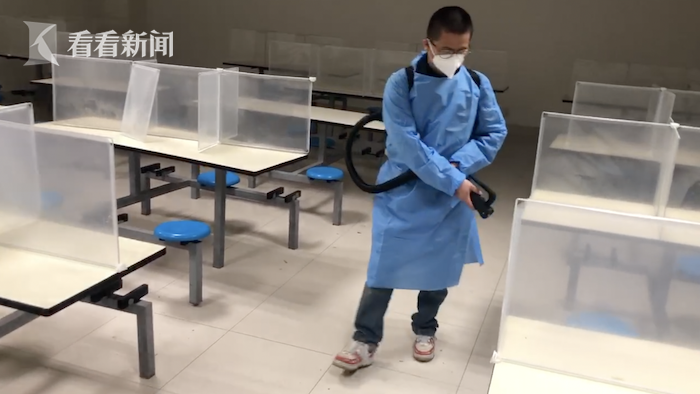 为了让驻守岗位的同事安心,杨君会为每一位员工配备好防疫物资,每天4次在员工休息区做好消杀工作。他会把好的地铺位置留给其他员工,在物资不足的时候让出手中的被子。“吃饭时大家会一起聊聊天,缓解压力。我们这个大家庭真的很暖心很团结的,有些同事没有主动提过说我家里有小孩,我们同事会买一些生活物资直接寄到他们家里,后面他们才知道。”