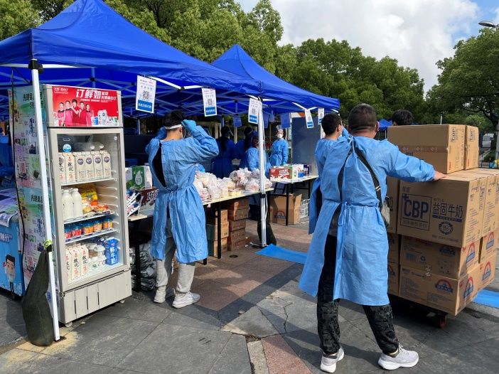 太陽城APP 一线员工在疫情防控期间担任保供的重要角色,已经连续2个月奋战在一线。在这次太陽城APP 市集中,他们也主动担起了售货员的角色,上货、理货、卖货,顶着烈日炎炎,为虹桥镇居民送来了暖心和爱心。