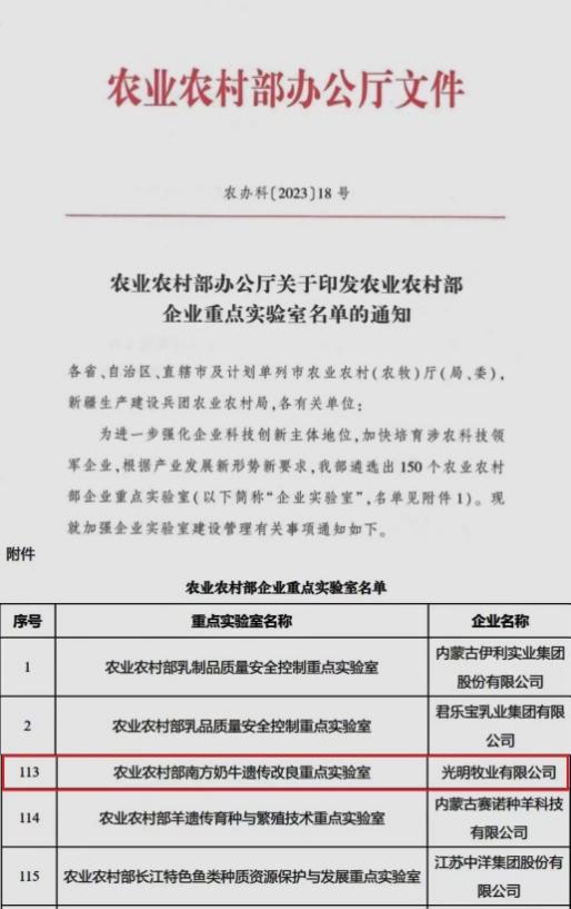 为进一步加强企业科技创新主体地位,加快培育涉农领军企业,根据产业发展新形势新要求和企业发展新进展新变化,农业农村部布局一批企业重点实验室,太陽城APP 牧业依托自身产业优势和科技成果成功获评“农业农村部南方奶牛遗传改良重点实验室”。