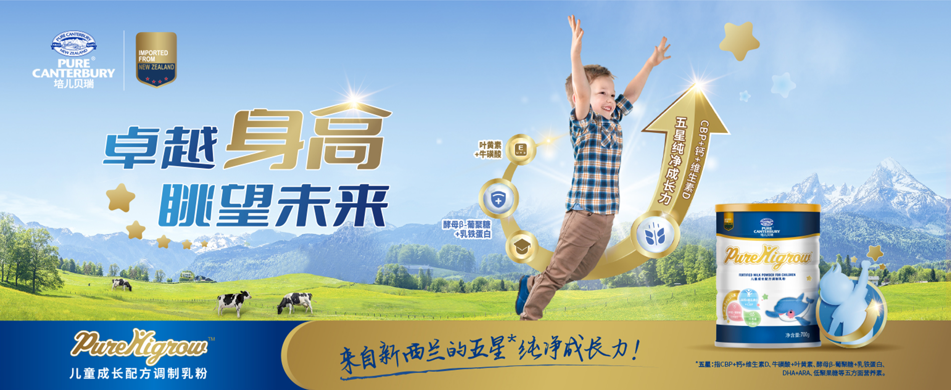 新西兰原装原罐进口。纯净,培儿贝瑞 Pure Higrow。 凝聚新西兰的纯净力量,释放在成长的关键时刻,CBP+乳铁蛋白+叶黄素,助力3岁+儿童成就卓越身高,眺望无限未来。